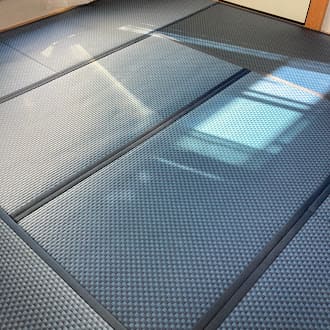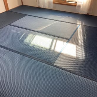 千葉県袖ヶ浦 アレルギー配慮畳工事施工例:セキスイMIGUSA インディゴ市松×スタンダード畳床クッション2mm(千葉本社)